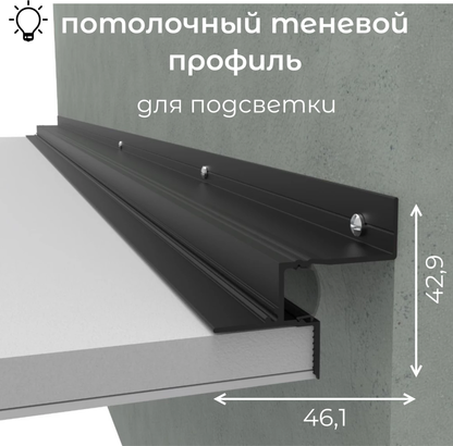АЧ46ТПП Теневой потолочный профиль алюминиевый под подсветку (Анодированный черный матовый 46,1х42,9х3000 мм) DecoStyl